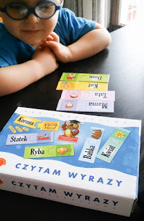 Zestaw "Czytam wyrazy" mogliście zobaczyć na fanpage'u. Jest to jedna z ulubionych gier Oskara w ostatnim czasie, choć bawił się tymi puzzlami, gdy miał nieco ponad rok. Od kilku tygodni raz na jakiś czas wracamy do układania puzzli na początek, poza MAMĄ i TATĄ, skupiając się na wyrazach jednosylabowych.